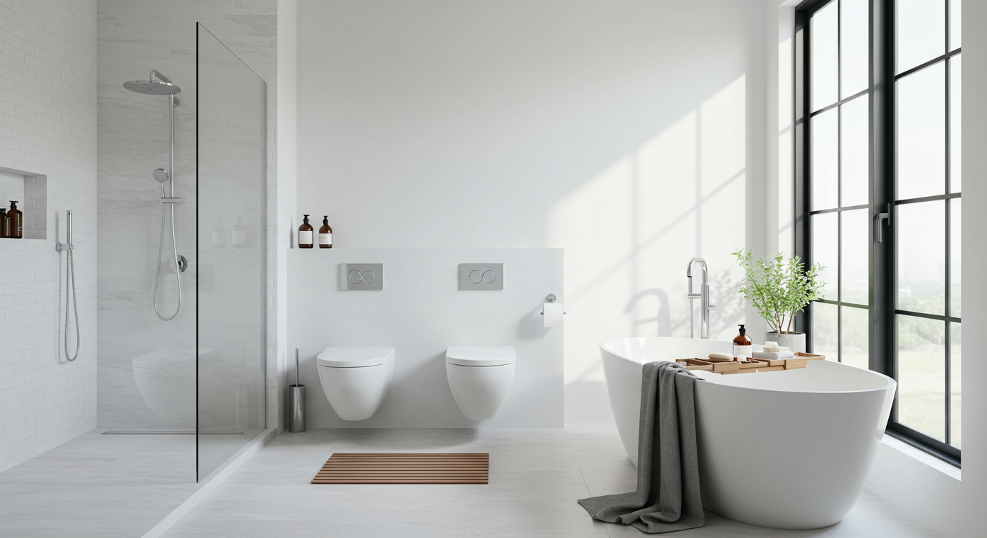 Most articles will tell you to forgo the tub and get a walk-in shower, this adds space to the bathroom and as long as there is at least one tub in the home, most people do use them unless they have young kids.